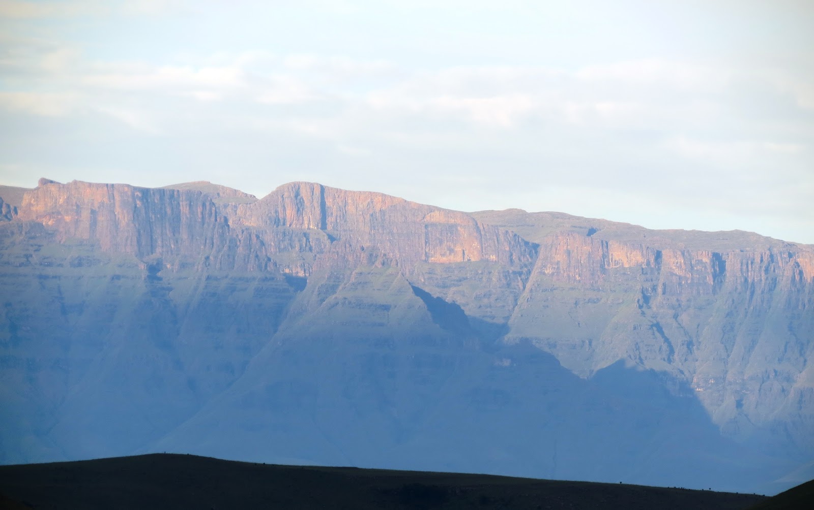 Got up at 5 this morning, had a cup of coffee and packed everything in the car. Fed the dogs, the cat and the birds. Had some muesli and just after 6 I was on the road heading west. Theoretically the trip should not take more than a hour, most of the road is a lovely tarred road, but for more than 30km it goes through Zulu tribal area, so you slow down to avoid cattle, goats, sheep, chickens, people and the stray pig. Not to mention that I stopped every couple of minutes to take photos. Above is my first clear view of the Drakensberg just catching the early morning sun. Still about 30km to go.